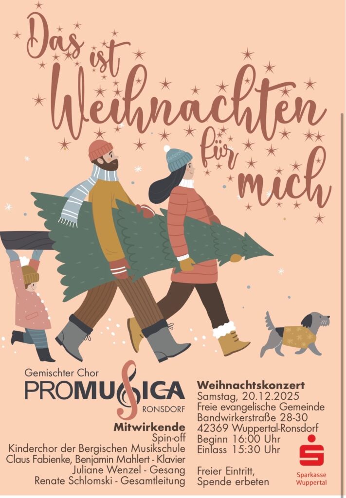 Weihnachtskonzert von Pro Musica am Samstag, 20.12.2025 um 16 Uhr in der Freien Evangelischen Gemeinde Wuppertal-Ronsdorf, Bandwirkerstraße